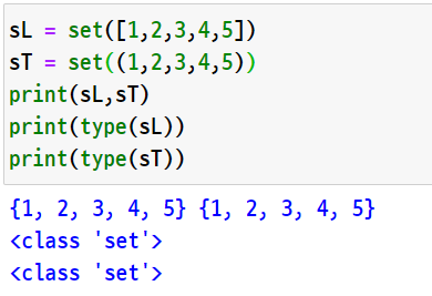 튜플 혹은 리스트를 set 으로 감싼다고 생각하면 된다.