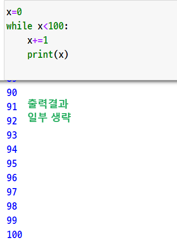 즉, x가 100보다 적다면 이 반복문은