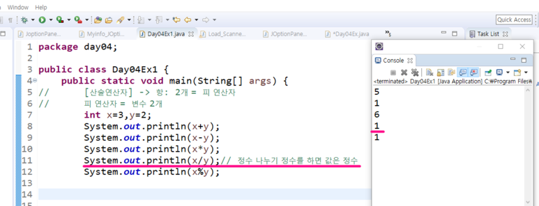 빨간 밑줄을 보면 3/2=1.5인데 1이 나온 이유는 자바에서 정수와 정수를 나눴을 때