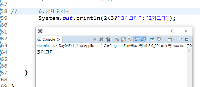(조건식)? true일 때 나올 값 : false일때 나올값