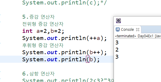 후회형 증감 = x++ (다른 거 하고 마지막에 1 증감시켜라)