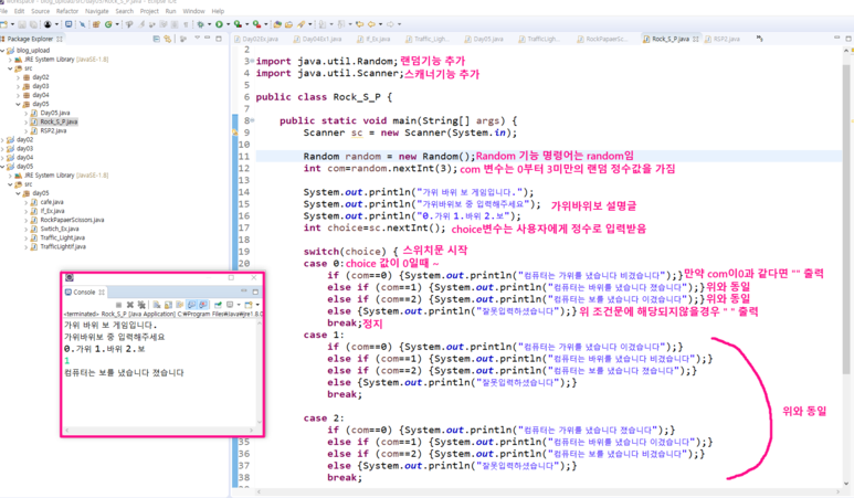 5. 컴퓨터에게 int com=random.nextInt(3); 을활용하여