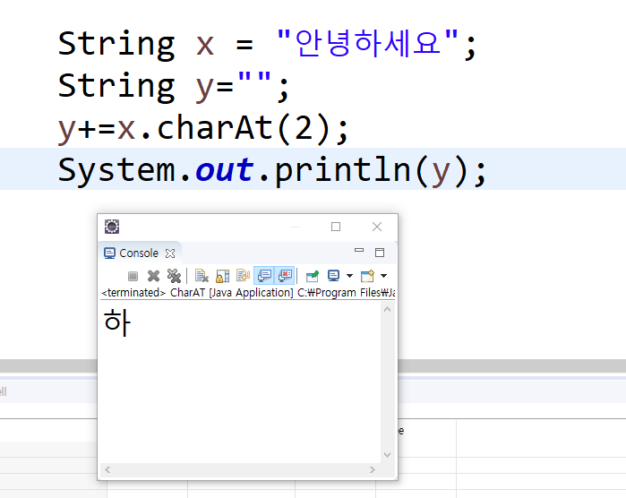 x.charAT(2);로 안녕하세요의 3번인 "하"를 추출하고