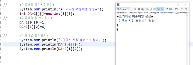 배 열명 [ 묶음의 인덱스 번호 ] [ 요소의 인덱스 번호 ]=추가할 값;