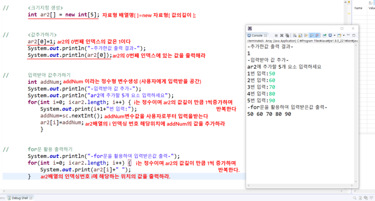 3) 크기지정생성, 값 추가하기, 입력받아 값 추가하기