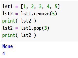 remove의 결과를 lst2에 담고 출력시 None이 출력된다